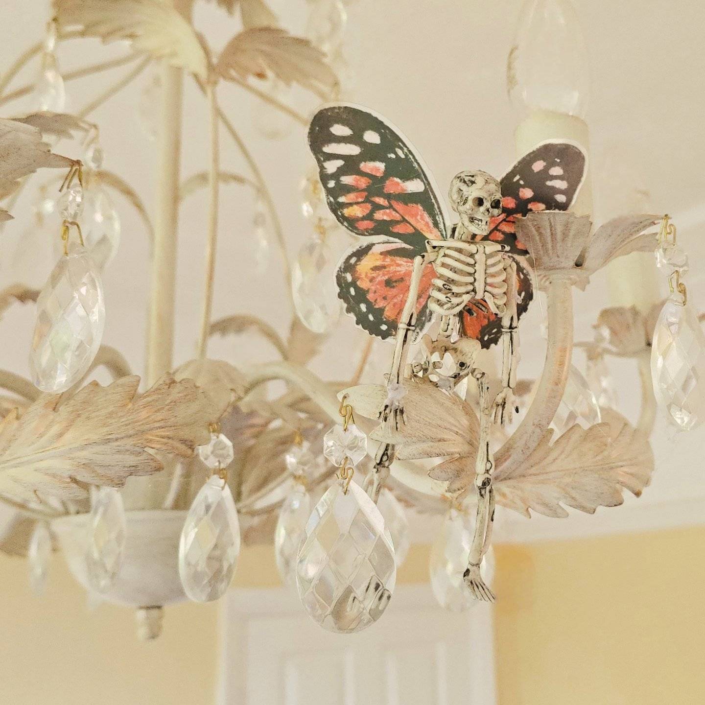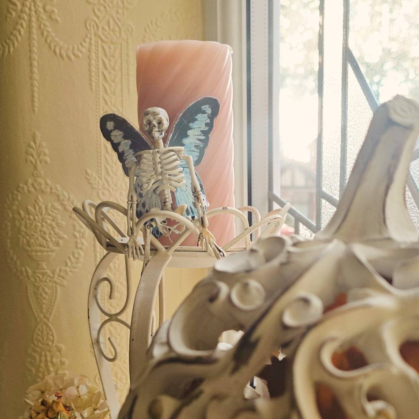 So Dorothy and I leaned in to the fairytale element and made these Halloween fairies. I love them on our mantle, window sills ans chandelier but they’d look equally good on a tablescape or attached to a wreath or garland.