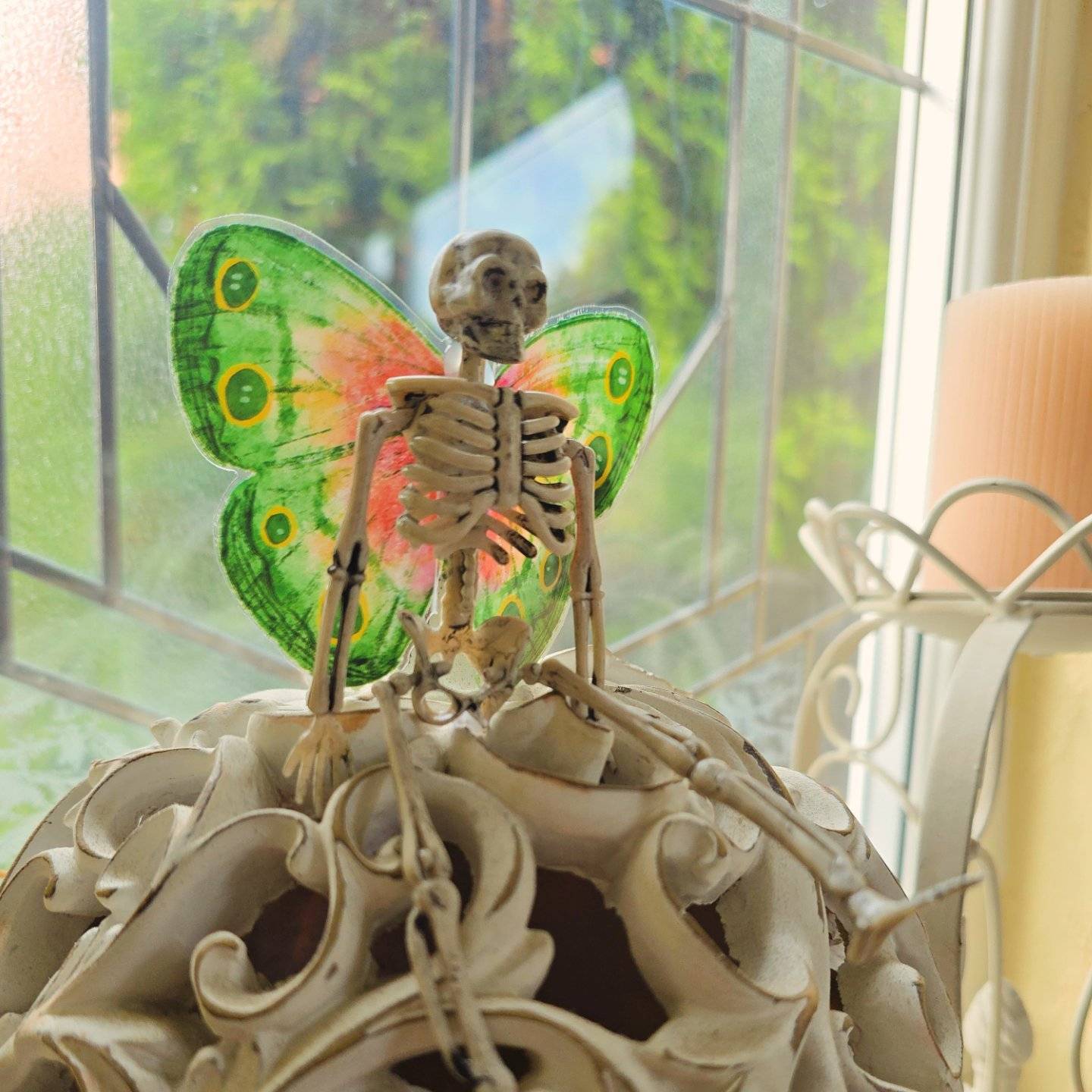 - Use that flat strip to attach the wings to the spine of the skeleton with hot glue