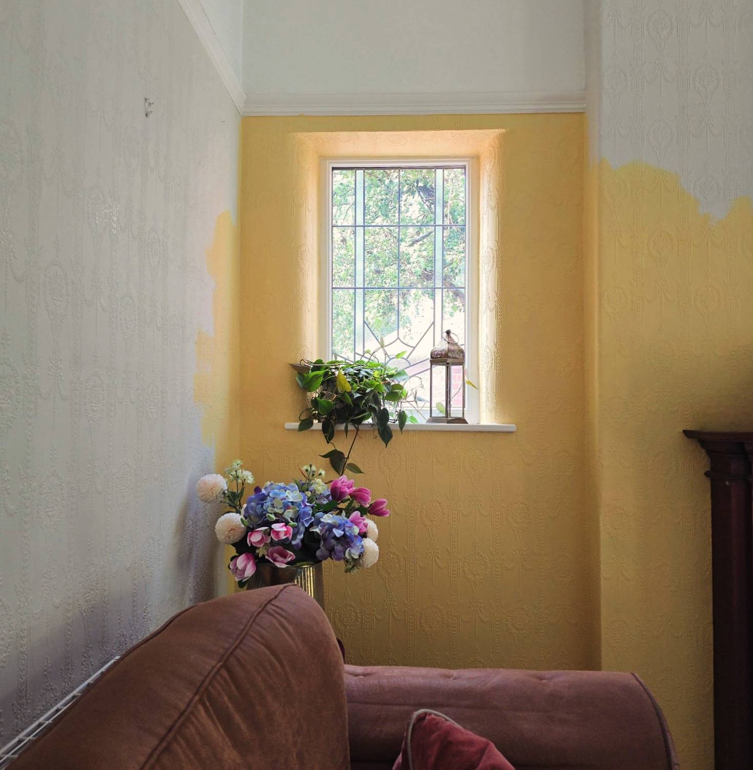 Our first attempt was a pale yellow from Dulux. The name escapes me, but honestly, it doesn’t matter. The colour was awful, and so was the paint itself. It felt like it had been watered down and so I wouldn’t recommend it. I painted a couple of patches before quickly realising it was a complete disaster. The colour reminded me of a 1990s GP’s waiting room. Much less “chic European townhouse”, more “NHS waiting times and donated magazines”. I was gutted.